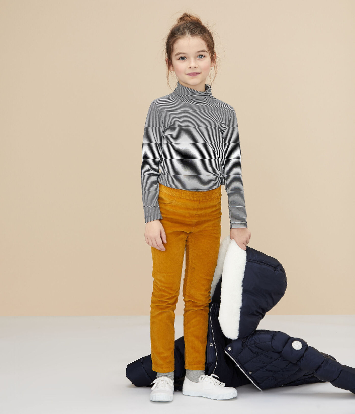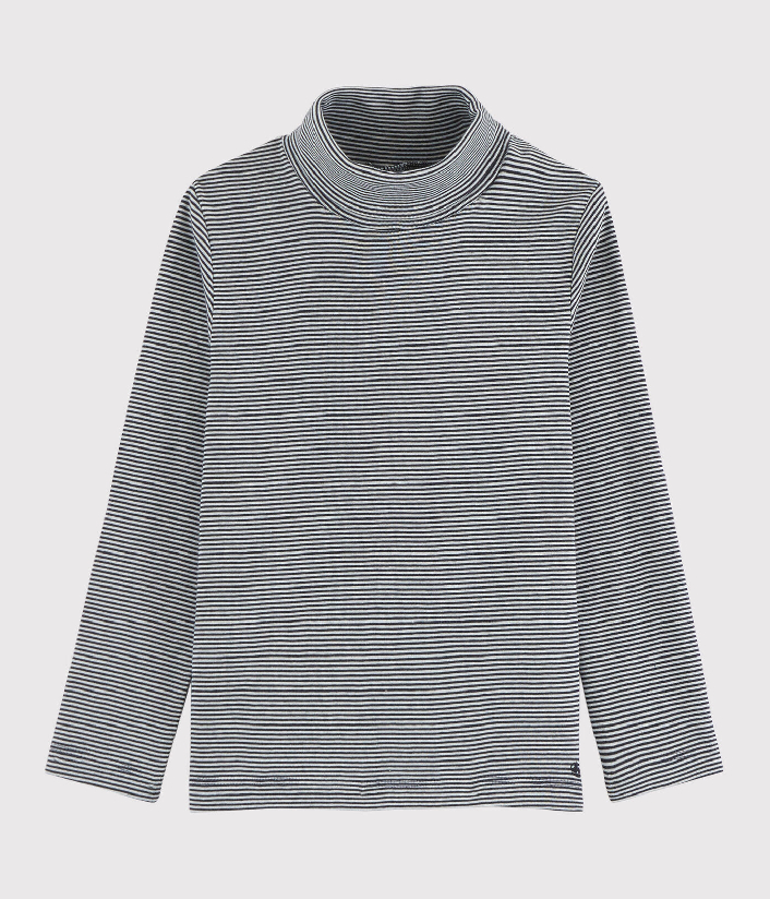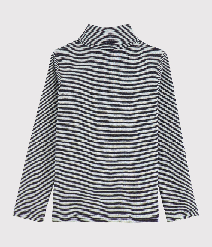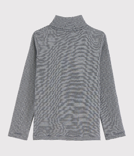 Тонкий свитер с высоким элегантным воротником украшен полоской. Состав: 100% хлопок