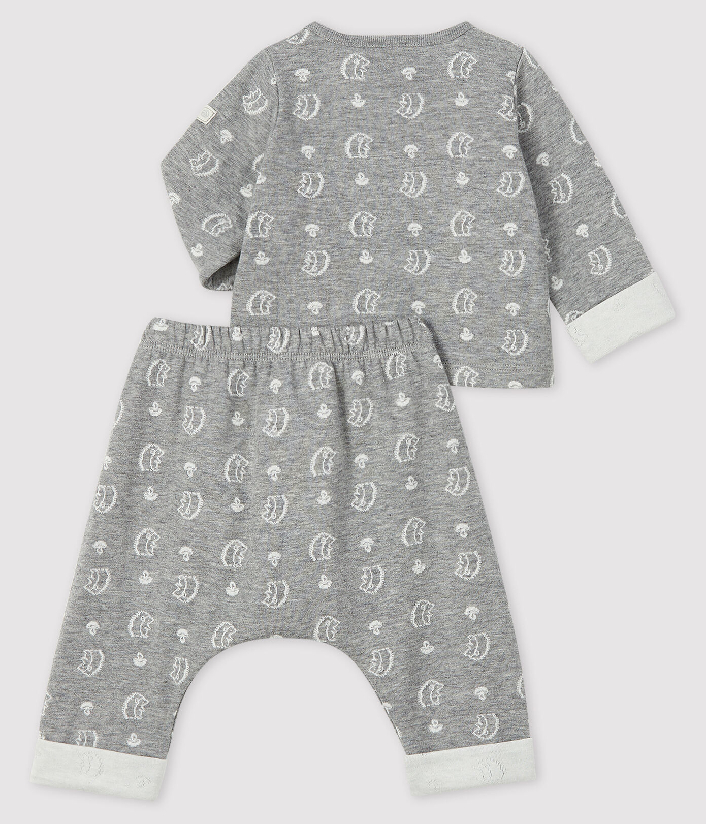 Кардиган и брюки двойной вязки с принтом ежиков. Состав: 100% хлопок