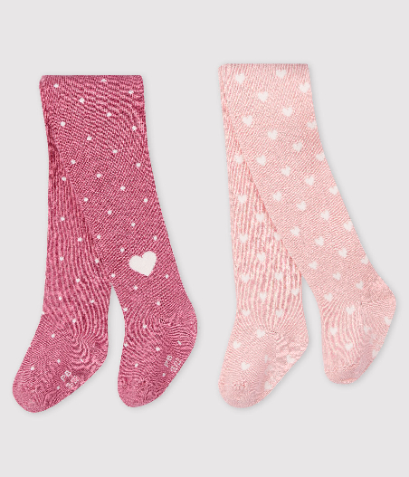 Колготки для девочки декорированные сердечками и горошком. Состав 83% хлопок, 15% полиамид, 2% эластан