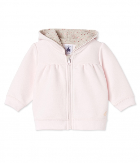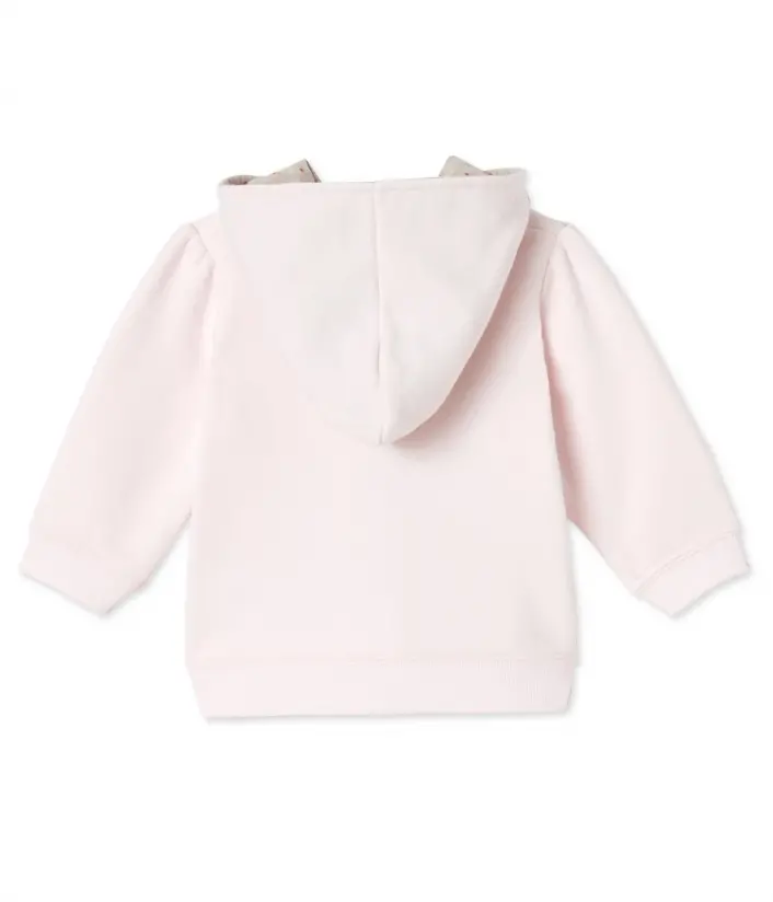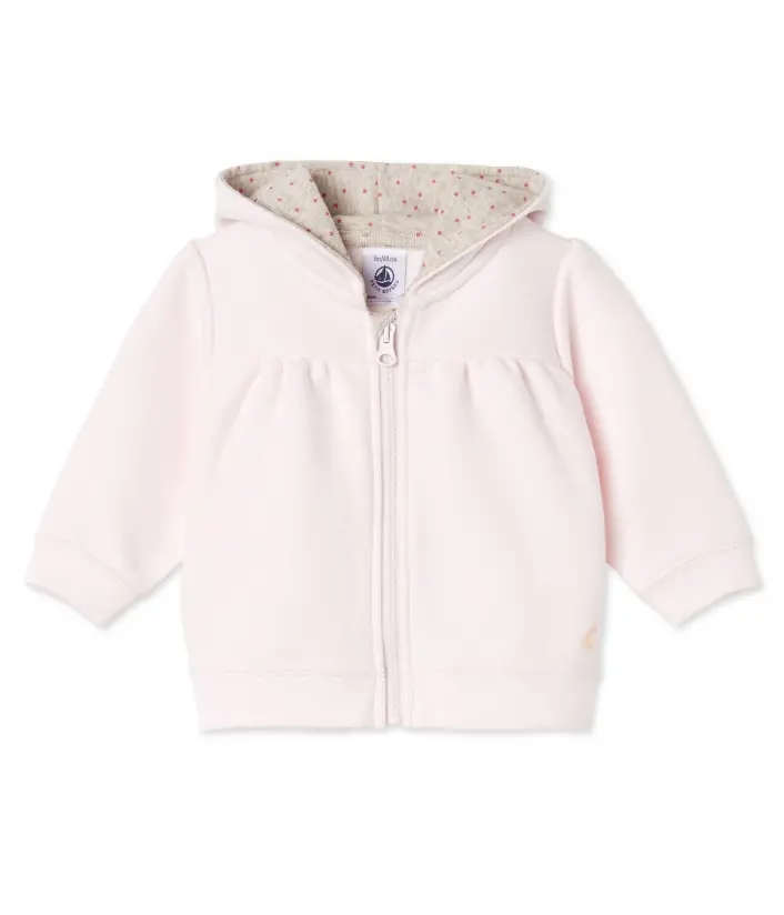 Кардиган с капюшоном для девочки, застегивается на молнию. Изготовлен из мягкого хлопка, украшен сборками на груди. Этот кардиган станет прекрасным завершающим штрихом в создании модного образа Вашей малышки. Материал: 100% хлопок.