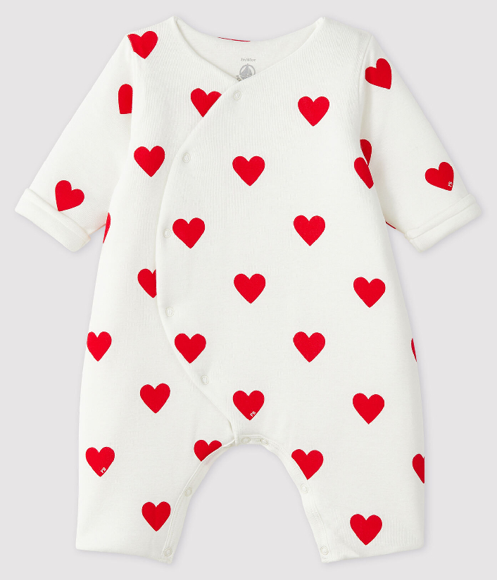 Комбинезон украшен принтом сердечек. Теплый и комфортный материал изделия. Не сковывает движений. Застежка на кнопочки. Комбинезон изготовлен из органического хлопка. Состав: 100% хлопок / 100% полиэстер