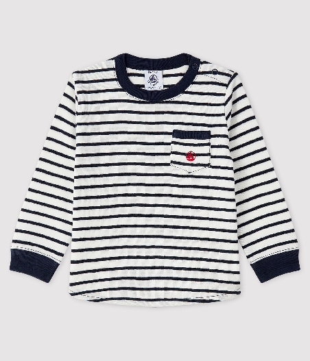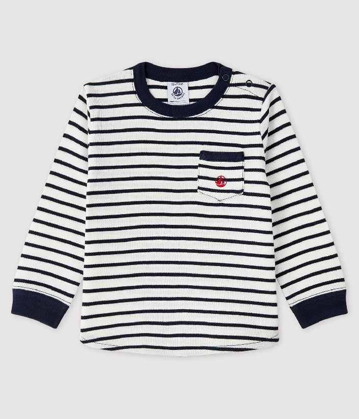 Футболка с длинными рукавами украшена полоской и эмблемой бренда Petit Bateau. Сочетайте с пуловером или кардиганом. Состав: 100% хлопок