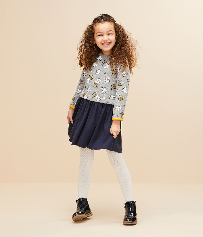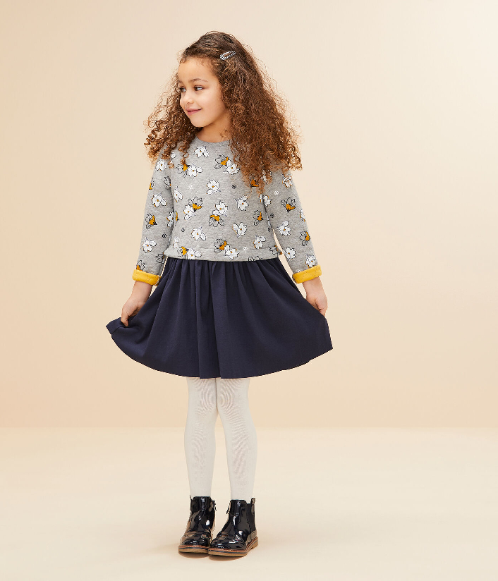 Платье с длинными рукавами. Верх изделия украшен цветочным принтом. Пышная юбка не сковывает движений. Состав: 75% хлопок, 25% полиэстер / 100% хлопок