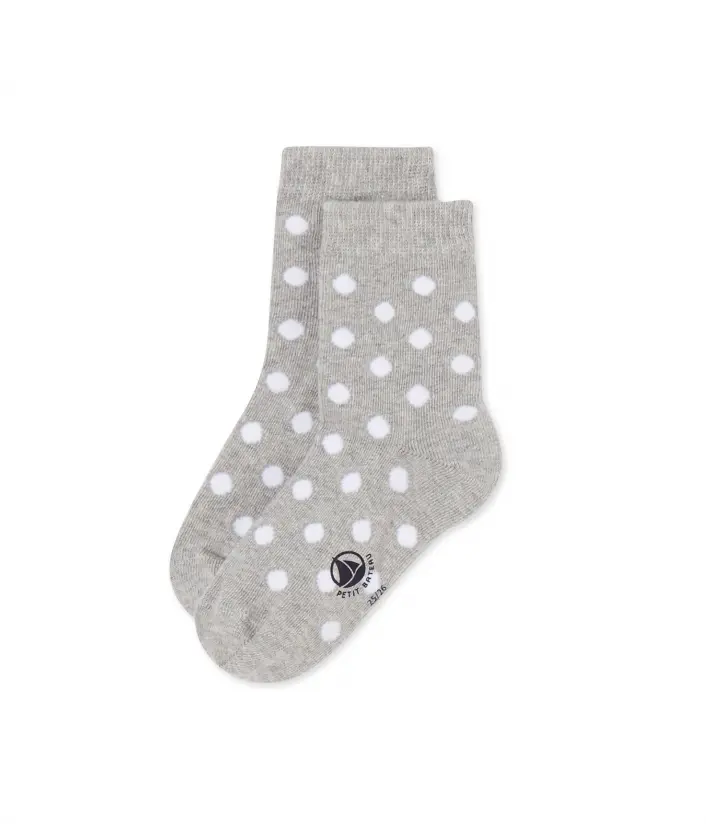 Детские носки, изготовленные из хлопковой ткани "джерси" в горошек. 100% качество от Petit Bateau. Материал: 76% хлопок, 13% полиамид, 9% полипропилен, 2% эластан.