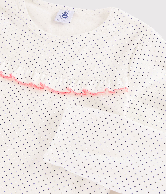 Футболка с длинными рукавами и брюки украшены горошком. Сертифицированный материал Oeko-Tex Standart 100 гарантирует качество. Состав: 100% хлопок