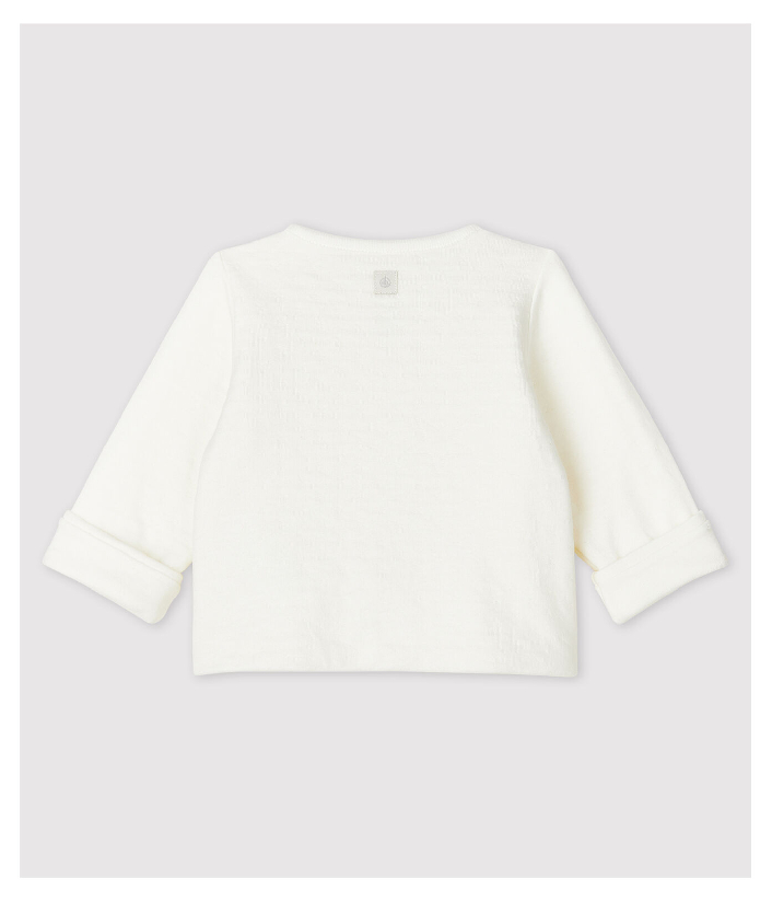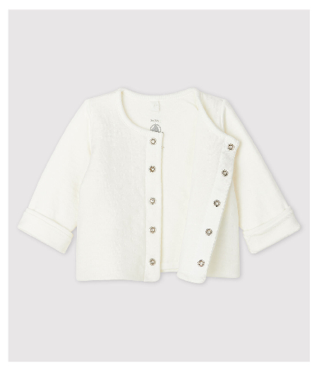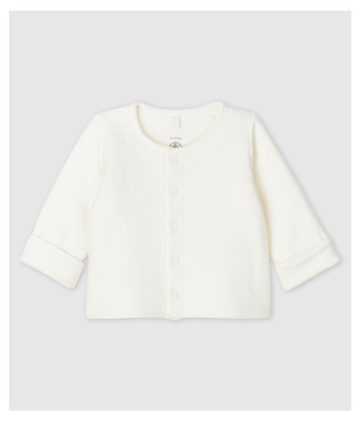 Белый кардиган со звездочками выглядит элегантно. Застежка на кнопочки. Хлопчатобумажная ткань Petit Bateau отмечена этикеткой OEKO-TEX®. Состав: 92% хлопок, 8% полиэстер / 100% хлопок