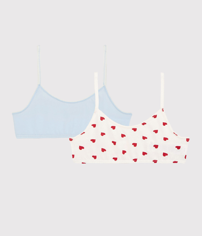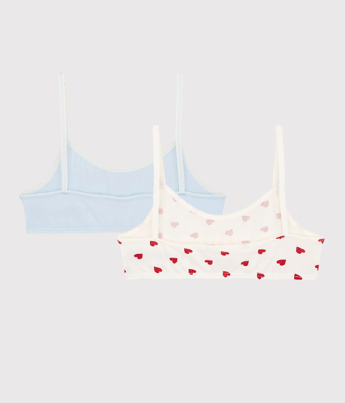 Набор с двумя бралеттамы для девочки. Трикотажный бюстгальтер без косточек на бретелях чрезвычайно удобен. Хлопчатобумажная ткань Petit Bateau отмечена этикеткой OEKO-TEX®. Состав: 93% хлопок, 7% эластан