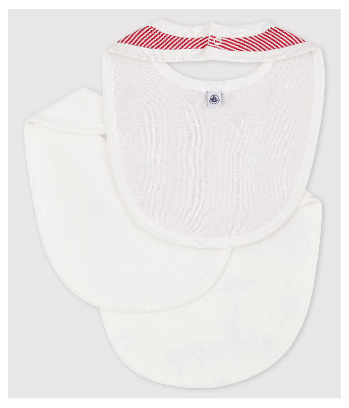 В комплекте три нагрудника для младенцев. Застежка на кнопочку сзади. Размеры: 22 х 17 см. Хлопковая ткань Petit Bateau отмечена этикеткой OEKO-TEX®. Состав: 100% хлопок