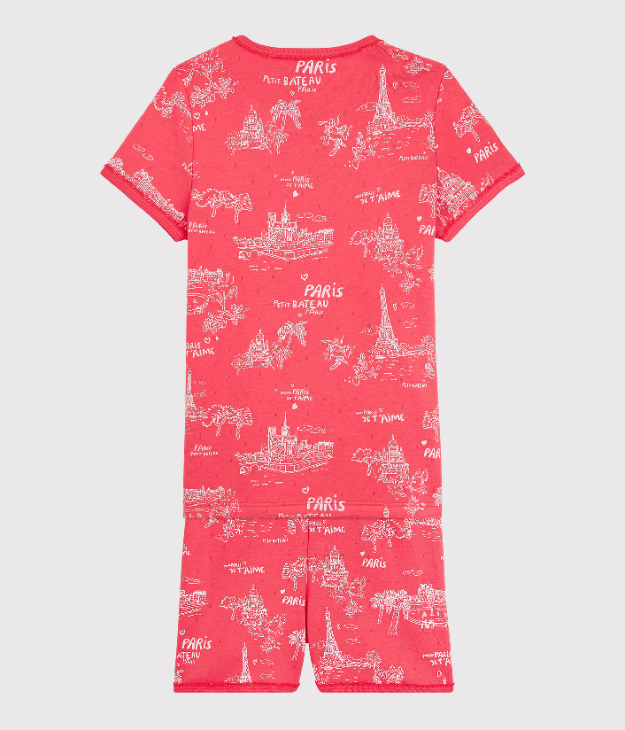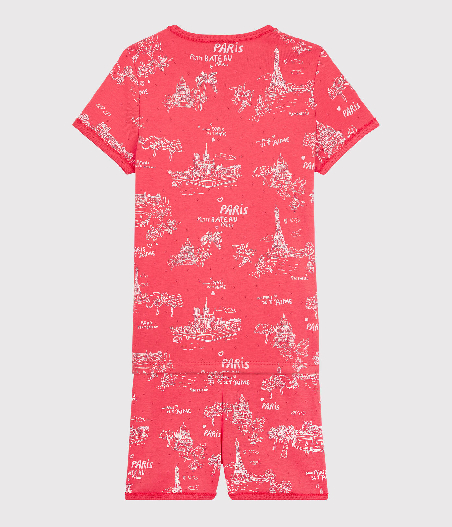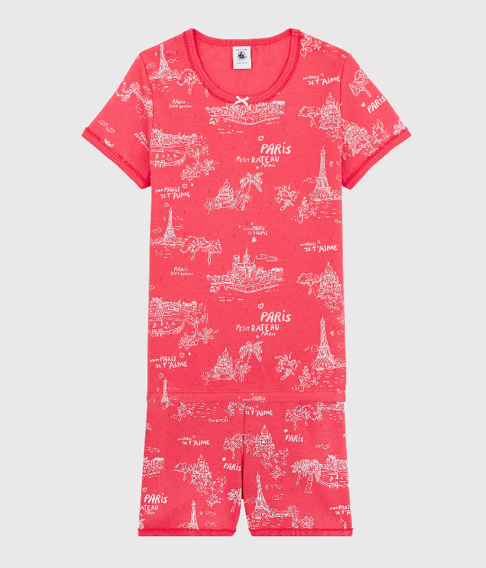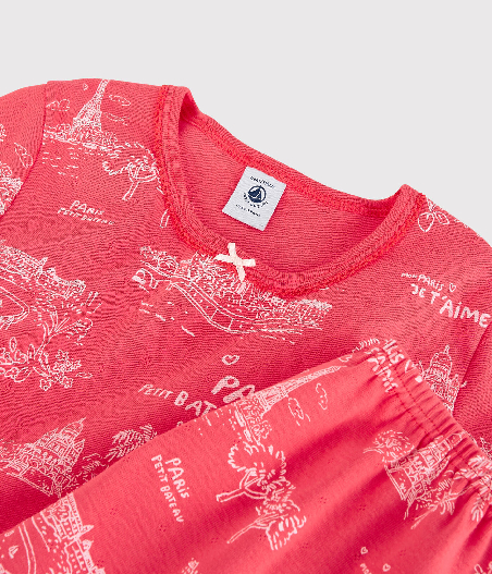 Пижама в стиле Туаль (фр. Toile de Jouy - «полотно с Жуи») украшена набивным монохромным рисунком. Хлопчатобумажная ткань Petit Bateau отмечена этикеткой OEKO-TEX®. Состав: 100% хлопок