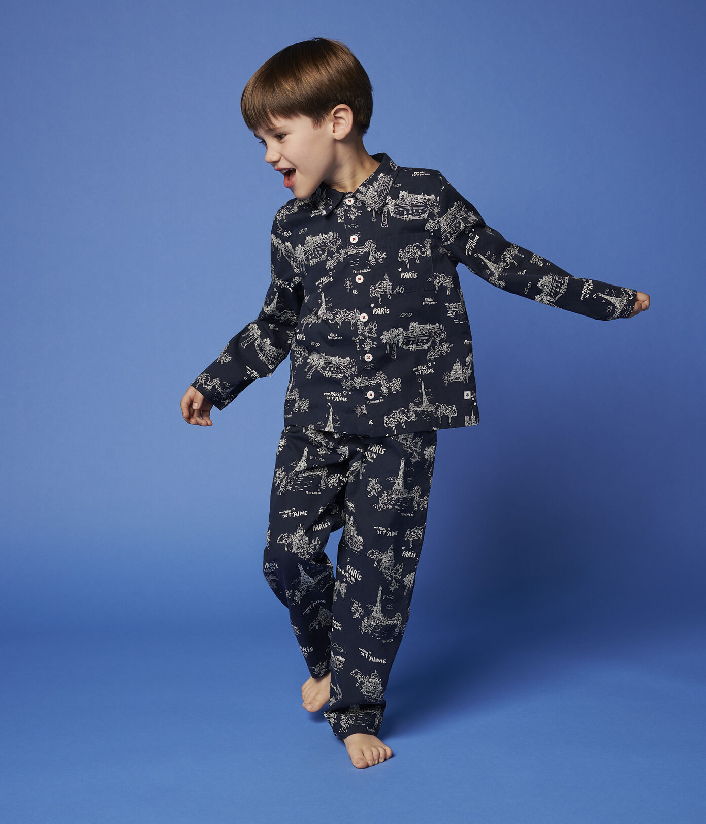 Классическая пижама с пуговицами. Хлопчатобумажная ткань Petit Bateau отмечена этикеткой OEKO-TEX®. Состав: 100% хлопок