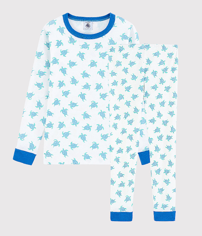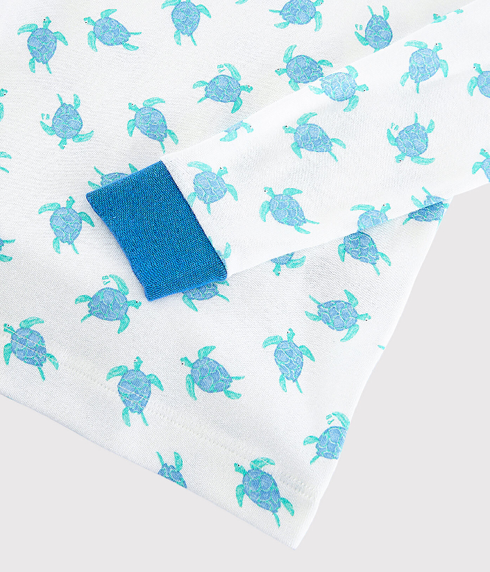Футболка с длинными рукавами и брюки украшены принтом ракушек. Пижама из хлопчатобумажной ткани Petit Bateau отмечена этикеткой OEKO-TEX®.Склад: 100% хлопок