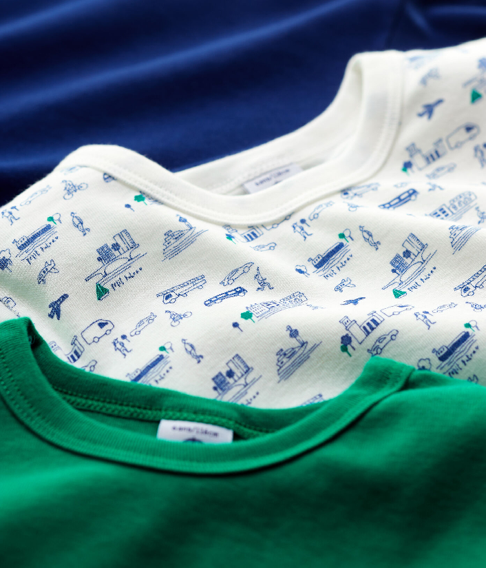 Разноцветные футболки с короткими рукавами украшены различными принтами. Хлопок Petit Bateau отмечена этикеткой OEKO-TEX®. Состав: 100% хлопок