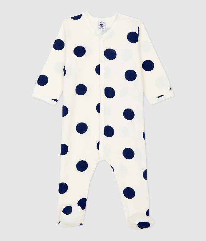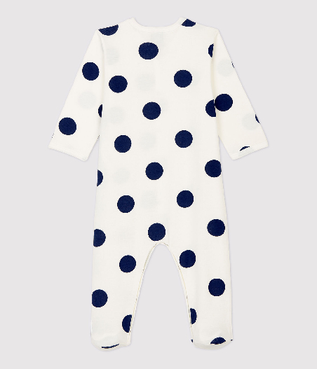Пижаму украшает крупный горошек. Застежка на кнопочки. Сертификат OEKO-TEX® STANDARD 100. Органический хлопок. Состав: 100% хлопок