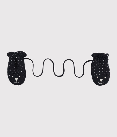 Теплые перчатки для младенца с ворсистой подкладкой, чтобы согреть руки ребенка. Перчатки крепятся друг к другу с помощью шнурка для того, чтобы не потерять. Состав: 50% акрил, 50% шерсть / 100% полиэстер