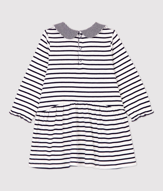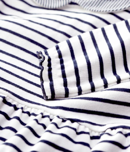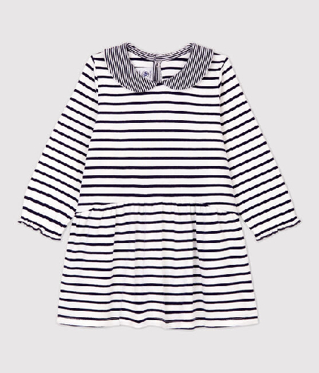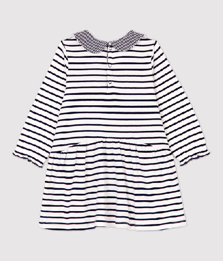 Платье в полоску и воротник в стиле "Питер Пэн". Застежка на кнопочки сзади платья. Состав: 100% хлопок