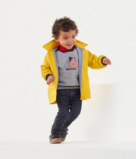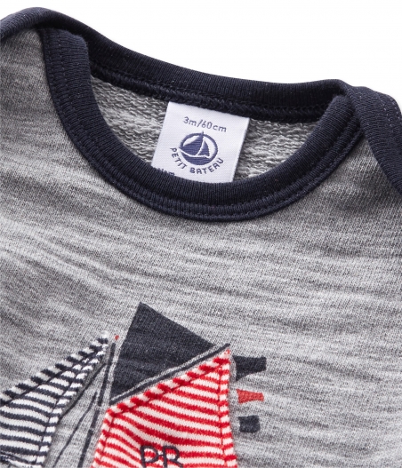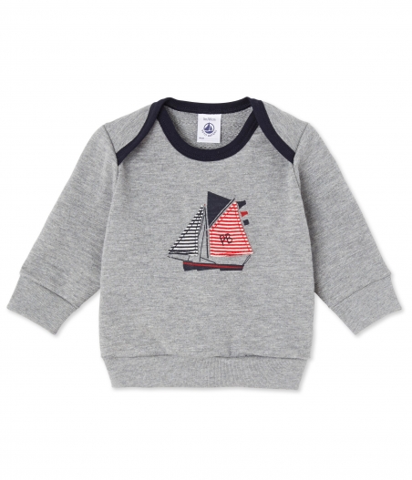Свитшот для мальчика, украшен изображением кораблика на груди. Материал: 100% хлопок.