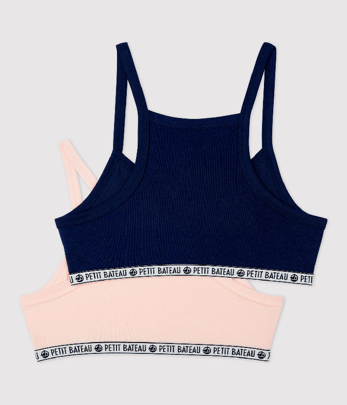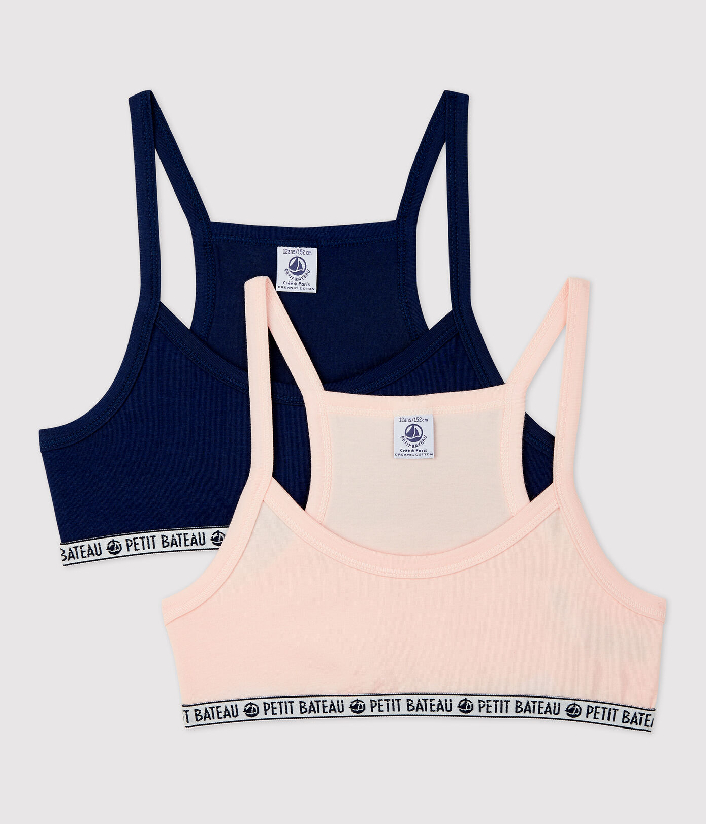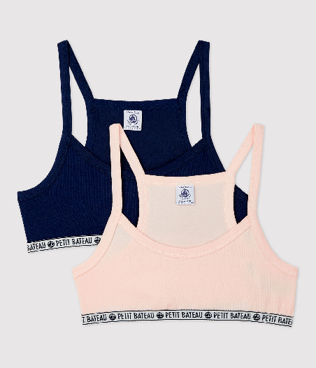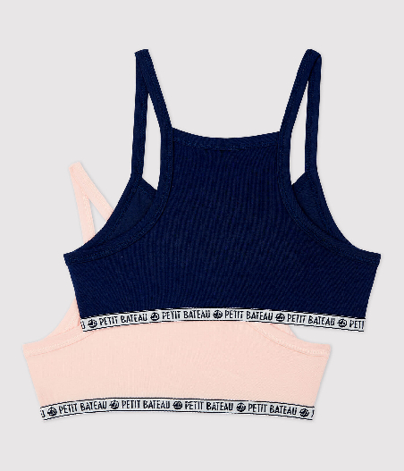 Набор с двумя бралеттами для девочки. Трикотажный бюстгальтер без косточек на бретелях чрезвычайно удобен. Органический хлопок. Сертифицированный материал OEKO-TEX® STANDARD 100, CQ 746/3, IFTH. Состав: 93% хлопок, 7% эластан