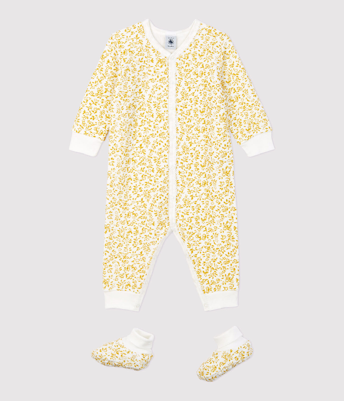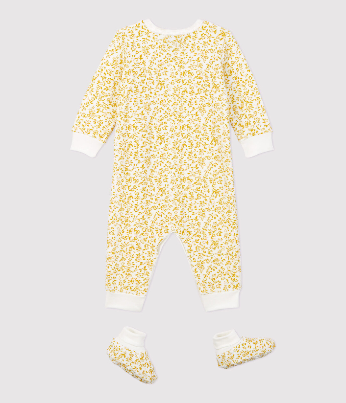 Махровая пижама с пинетками украшена цветочным принтом. Тепло, комфортно и удобно. Хлопок Petit Bateau отмечен этикеткой OEKO-TEX®. Состав: 42% хлопок, 42% модал, 16% полиамид / 100% хлопок