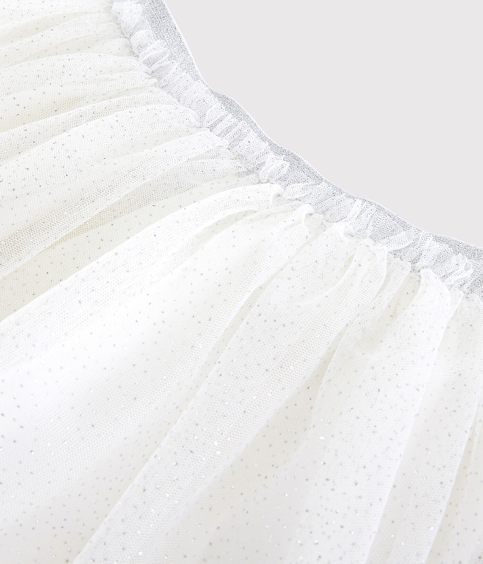 Пышная юбка белого цвета пошита из хлопка и фатина. Эластичный пояс. Состав: 100% полиамид / 100% хлопок