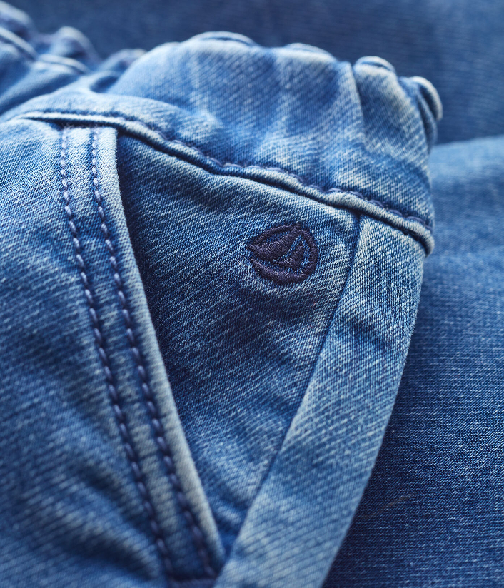 Стильные брюки из джинсового материала, которые на 75% состоят из органического хлопка. Эластичный пояс. Состав: 88% хлопок, 11% полиэстер, 1% эластан/65% полиамид, 35% хлопок