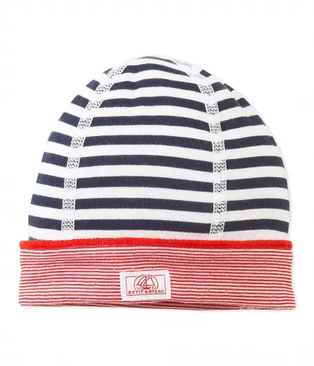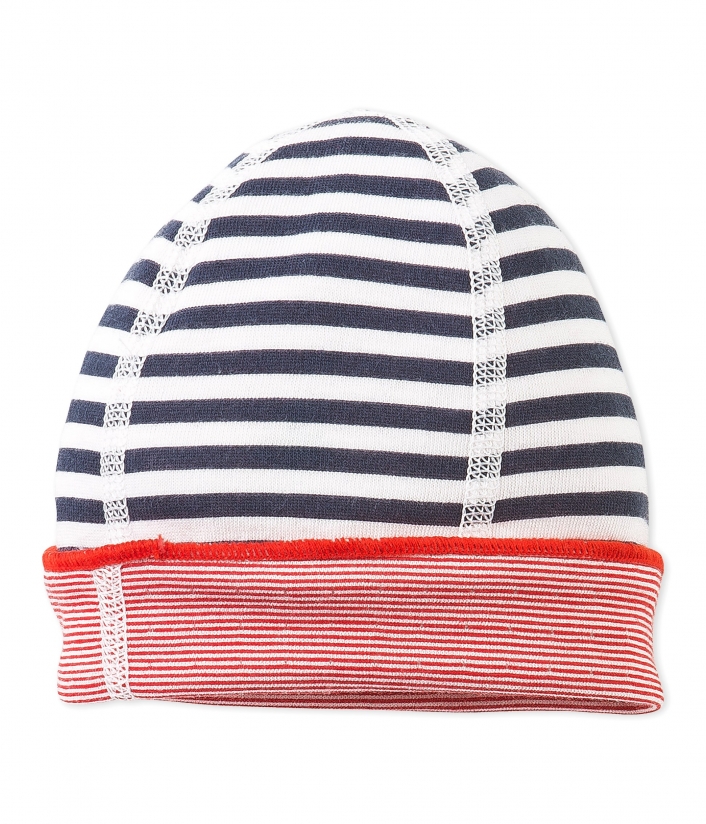 Традиционная шапочка Petit Bateau для новорожденного мальчика или девочки, изготовленная из мягкой ткани в полоску. Эта шапочка - один из самых необходимых аксессуаров в гардеробе малыша. Материал: 100% хлопок.