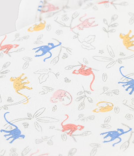 Комбинезон с принтом разноцветных обезьянок. Застёжка на кнопочки. Сертификат OEKO-TEX STANDARD 100, CQ 746/3, IFTH. Органический хлопок. Состав: 100% хлопок