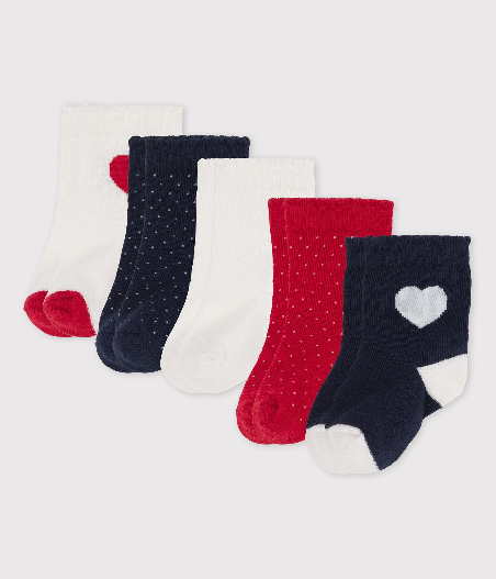 Пять пар милых разноцветных носков для малышей. Размеры: 15/18=7,4-8,3 см; 19/22 = 9,7-10,6 см. Состав: 78% хлопок, 20% полиамид, 2% эластан