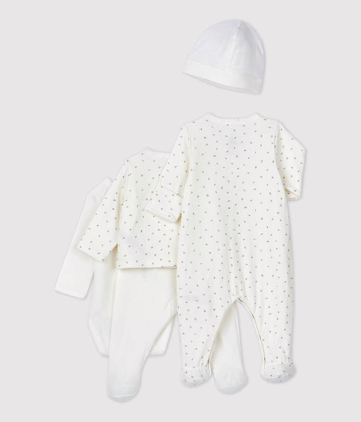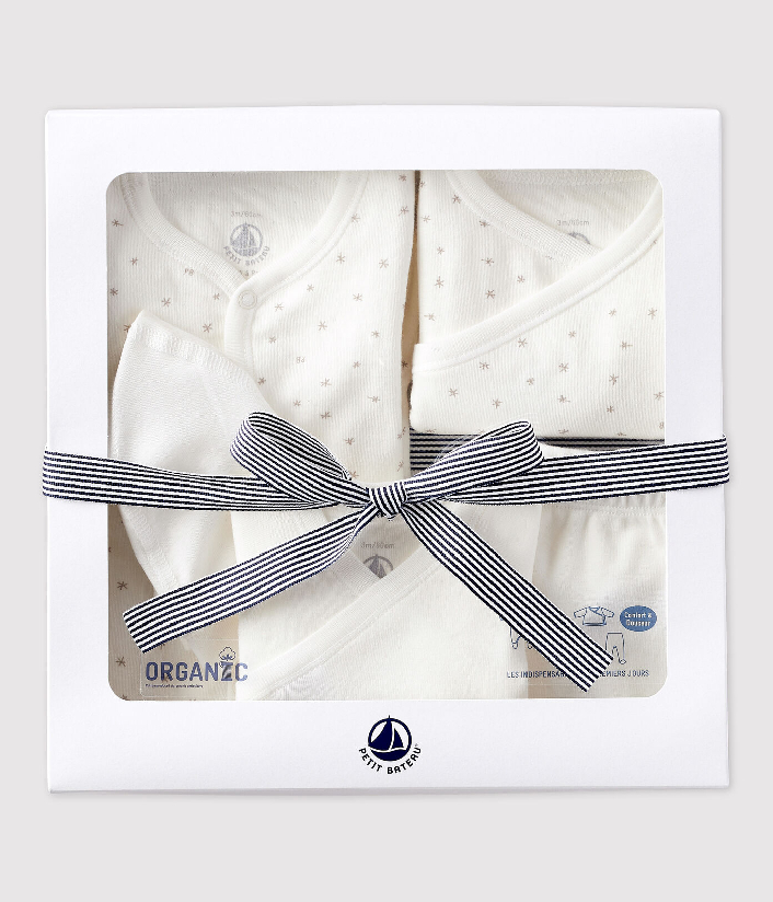 Все, что вам нужно, в одном подарочном комплекте для новорожденного: пижама, боди с длинными рукавами, ползунки, блузка, шапочка. Сертифицированный материал Oeko-Tex Standart 100 гарантирует качество. Для пошива изделия используется органический хлопок. Состав: 100% хлопок