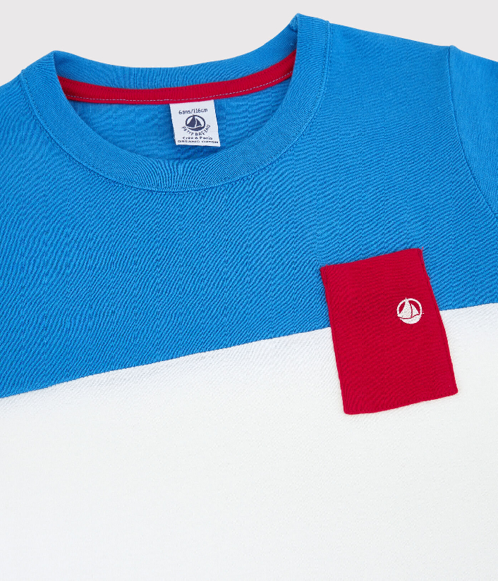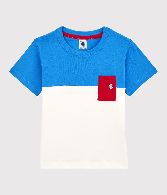 Футболка голубовато-белого цвета с контрастным красным карманом. Прекрасный выбор на каждый день. Состав: 100% хлопок