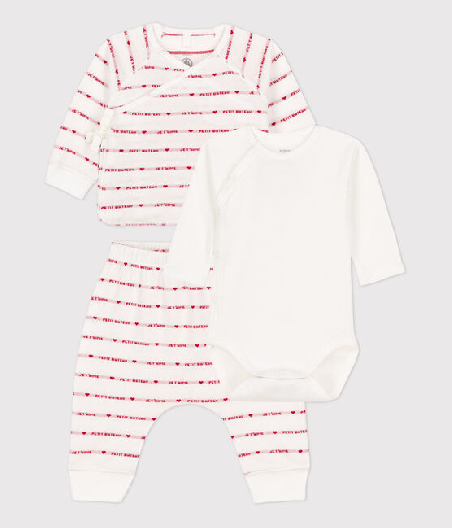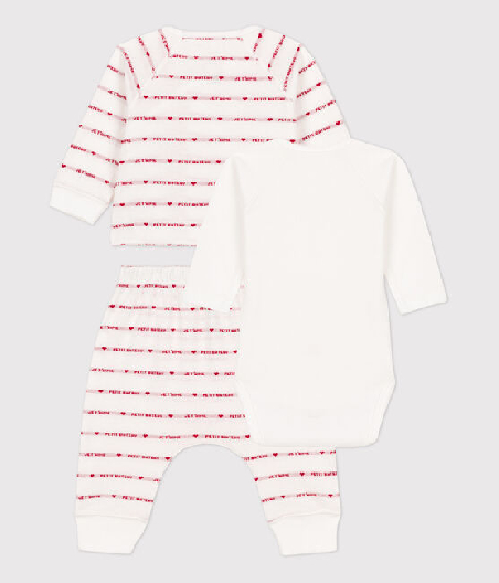 Кардиган с принтом сердец. Боди с застежкой на кнопочки. Брюки имеют эластичный пояс, поэтому ребенку будет в них комфортно. Органическая хлопчатобумажная ткань Petit Bateau отмечена этикеткой OEKO-TEX®. Состав: 100% хлопок