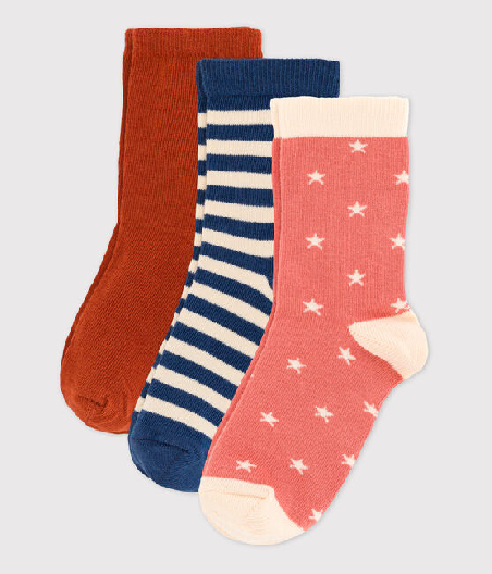 В комплекте три пары разноцветных носков. Длина ступни: 23/26 = 14,6-16,1 см; 27/30 = 17,2-18 см; 31/34 = 19,6-21,3 см; 35/38 = 22,8-23,8 см. Состав: 77% хлопок, 21% полиамид, 2% эластан