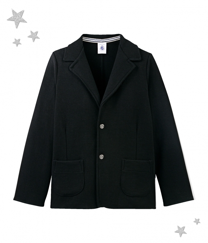 Жакет для мальчика, изготовленный из трикотажа двойной вязки. Обратите внимание на детали: два накладных кармана и накладки на локтях тон-в-тон с жакетом. Этот жакет идеально подойдет на каждый день или для особенных случаев. Материал: 97% хлопок, 3% полиамид.