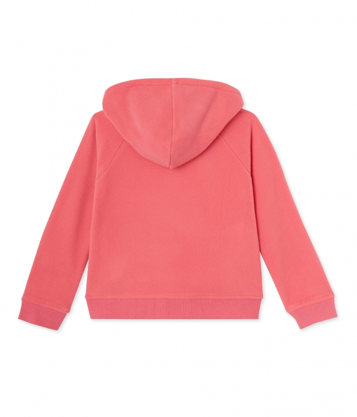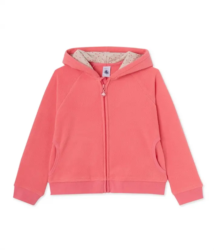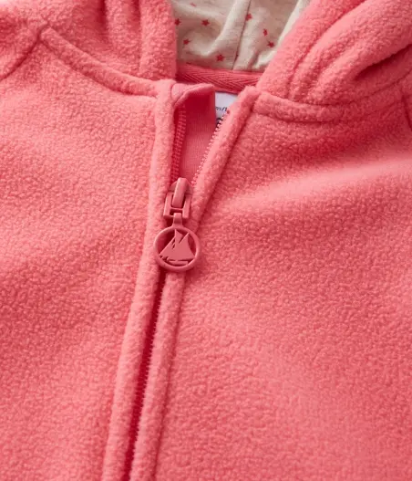 Флисовый свитшот с капюшоном для девочки. Имеет застежку-молнию, украшенную корабликом Petit Bateau, и два закругленных кармана по бокам. Этот теплый свитшот идеально подойдет для зимнего сезона. Материал: 95% хлопок, 5% эластан.