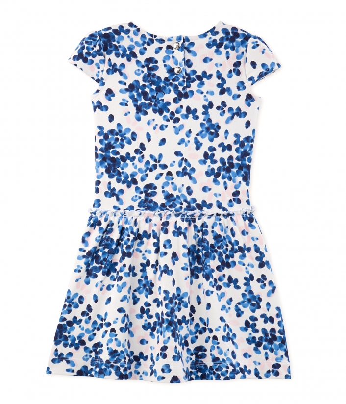 Летнее платье с короткими рукавами. Изготовлено из хлопковой ткани с нежным цеточным узором. Платье застегивается на кнопки на спинке. Материал: 100% хлопок