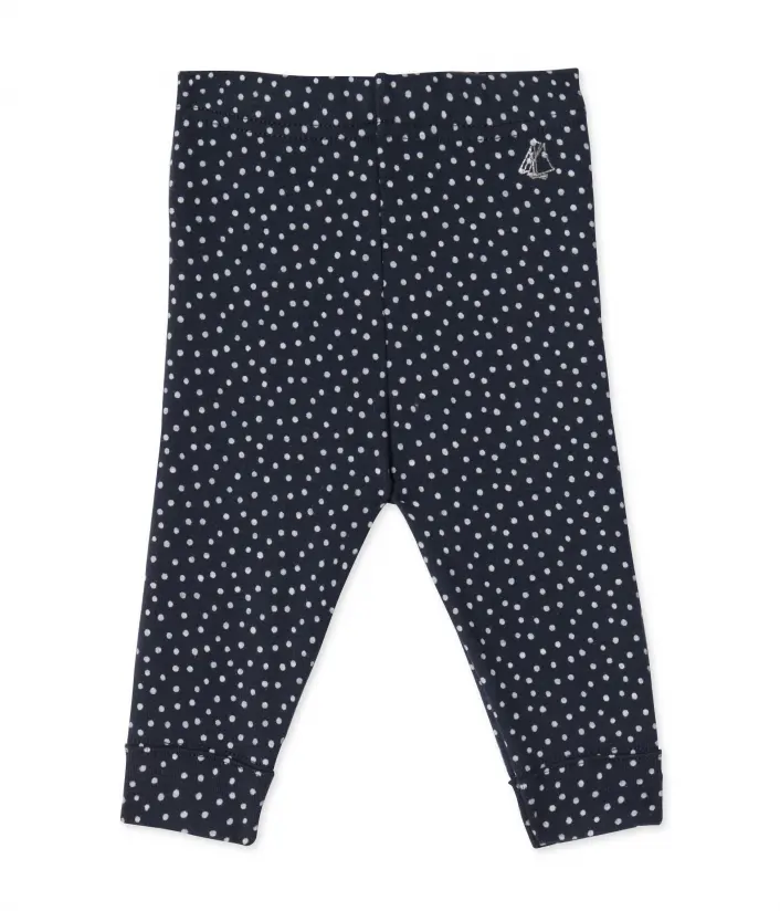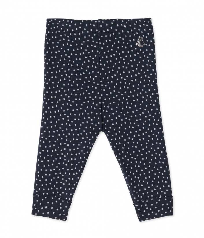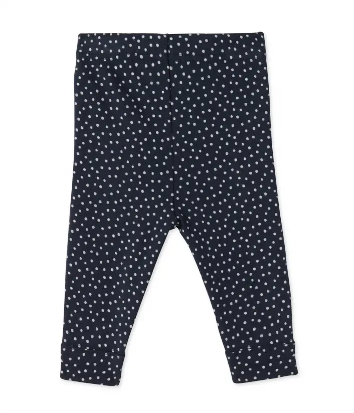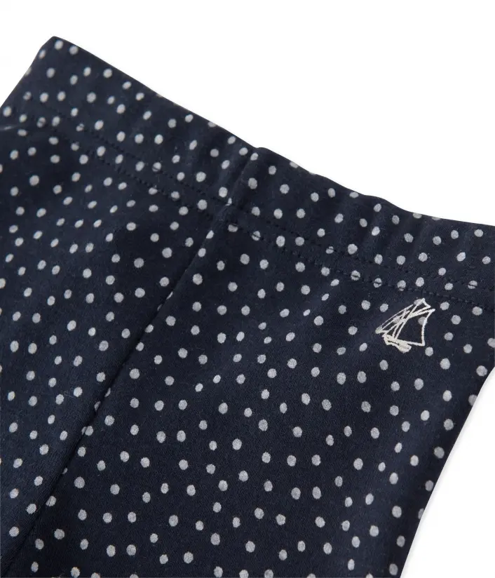 Удобные хлопковые легинсы в мелкий горошек с манжетами, украшенные изображением фирменного кораблика Petit Bateau. Состав: 100% хлопок.