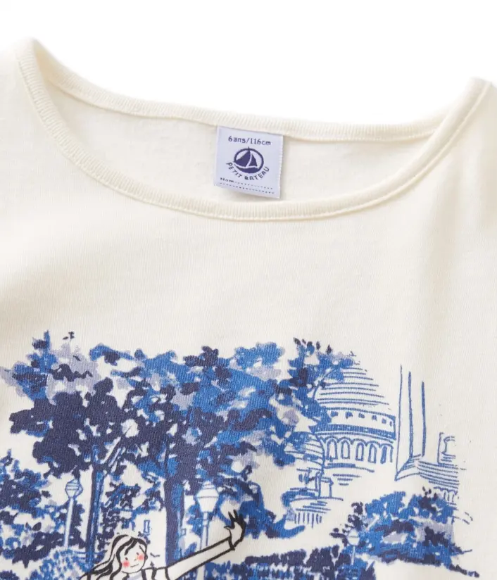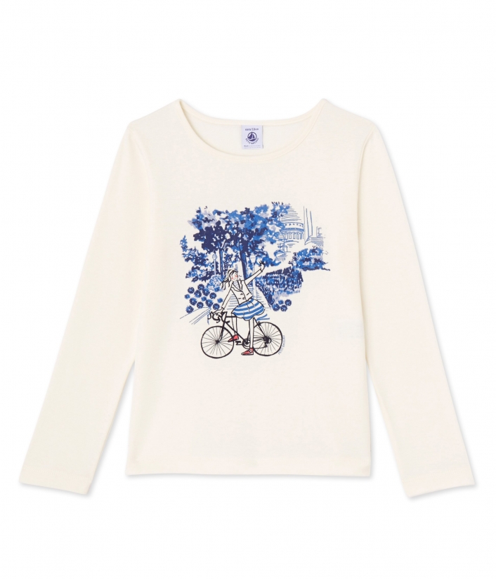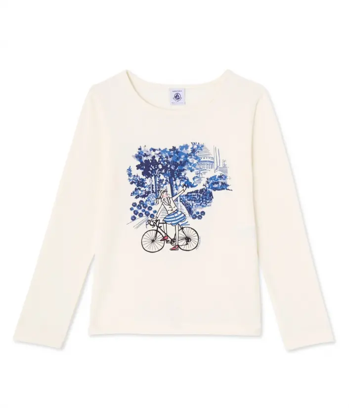 Футболка с длинными рукавами для девочки, декорирована красивым рисунком на груди. Материал: 100% хлопок.