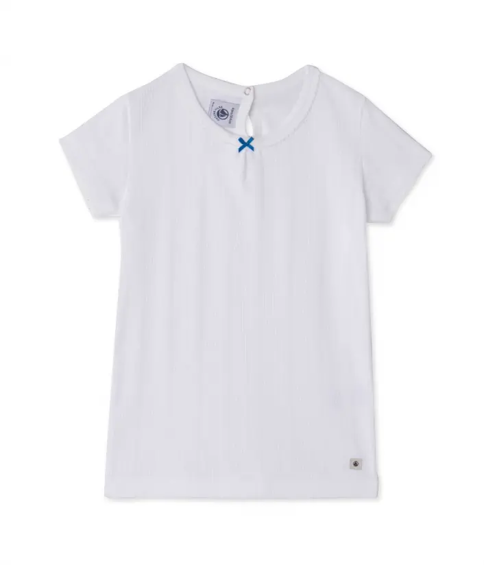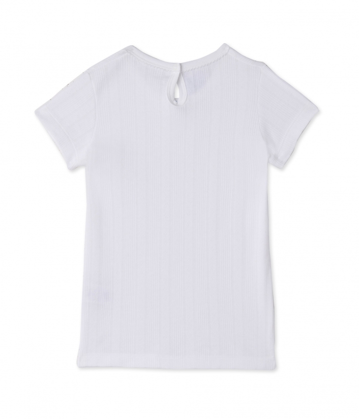 Футболка с короткими рукавами для девочки, изготовленная из 100% хлопковой ткани в рубчик и декорированная сборкой на вырезе спереди, а также каплевидным отверстием на спинке. Эта футболка идеально сочетается с любыми брюками из коллекции Mix & Match: свободно комбинируйте верх и низ пижам, создавая каждый раз пижаму на свой вкус! Состав: 100% хлопок.