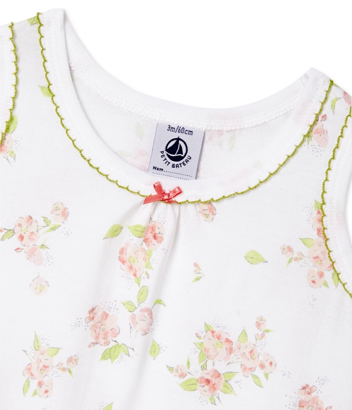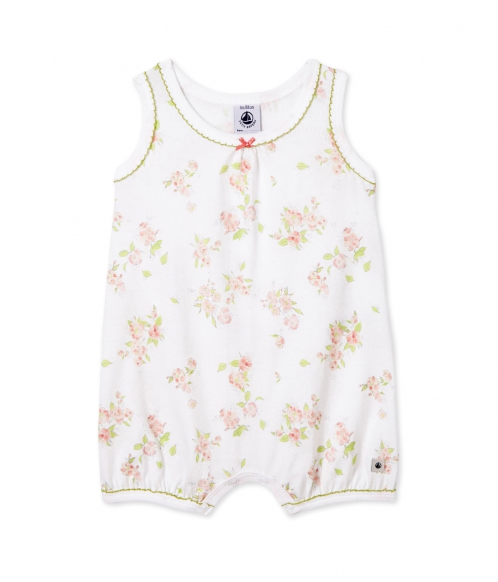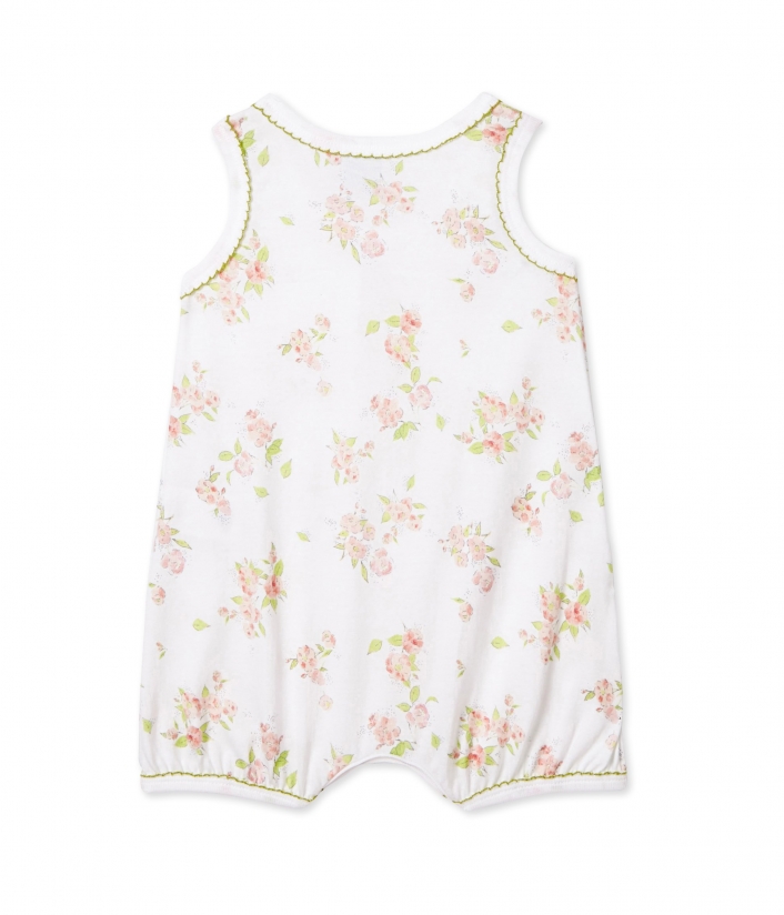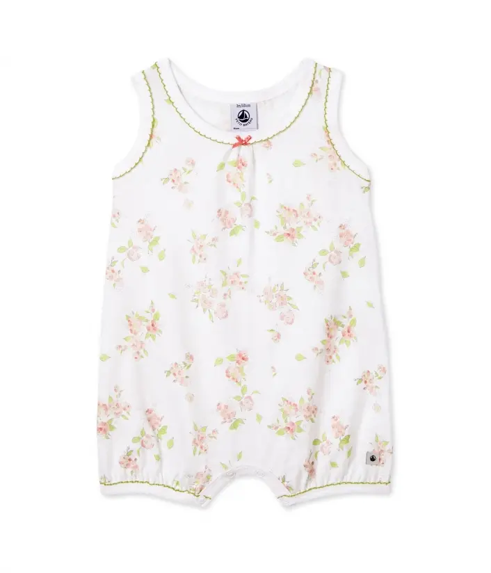 Этот изысканный детский песочник изготовлен из тонкого джерси с прекрасным цветочным орнаментом. Вам понравится маленький бантик и отделка в стиле "пико", которые придают оттенок женственности этому летнему комбинезону. Состав: 100% хлопок.